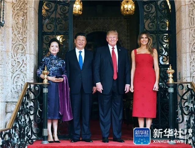 2017年4月6日,习近平在美国佛罗里达州海湖庄园同美国总统特朗普举行中美元首会晤。这是习近平和夫人彭丽媛同特朗普和夫人梅拉尼娅合影留念。新华社记者 饶爱民 摄