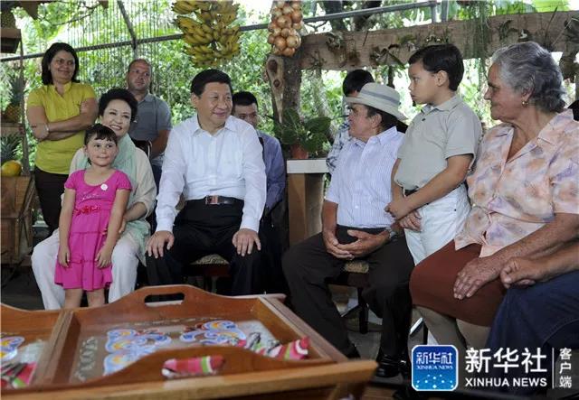 2013年6月3日,习近平和夫人彭丽媛走访哥斯达黎加埃雷迪亚省圣多明哥小镇农户萨莫拉一家,与萨莫拉一家人亲切交流。新华社记者 张铎 摄
