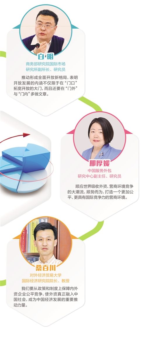 邢厚媛:首先要坚持对外开放基本国策毫不动摇。其次是顺应世界吸收外资、营商环境竞争的大潮流,顺势而为,打造一个更加公平、更具有国际竞争力的营商环境。此外,外资和内资需要融合发展。外资在中国投资发展,也要对中国经济发展、技术创新、社会就业、社会环境建设作出贡献。
