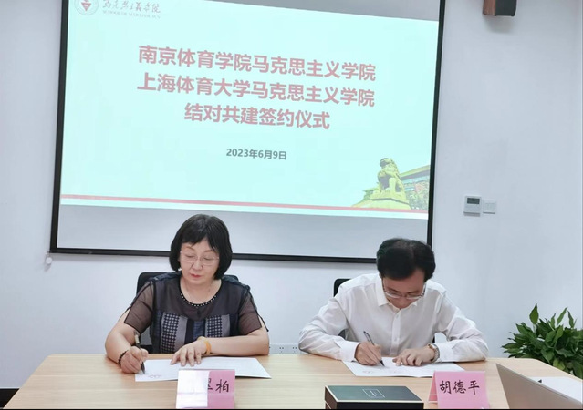 为进一步推动学习贯彻习近平新时代中国特色社会主义思想主题教育走深走实,围绕主题教育“学思想、强党性、重实践、强党性”的总要求,结合马克思主义学院党建、业务工作实际,6月9日,在支部书记葛翠柏、副书记石红霞的带领下,马克思主义学院一行7人赴上海体育学院调研并开展座谈交流,上海体育学院马克思主义学院院长胡德平、副院长马焕等参加座谈交流会。葛翠柏、胡德平分别代表两校马克思主义学院签订结对共建协议书。