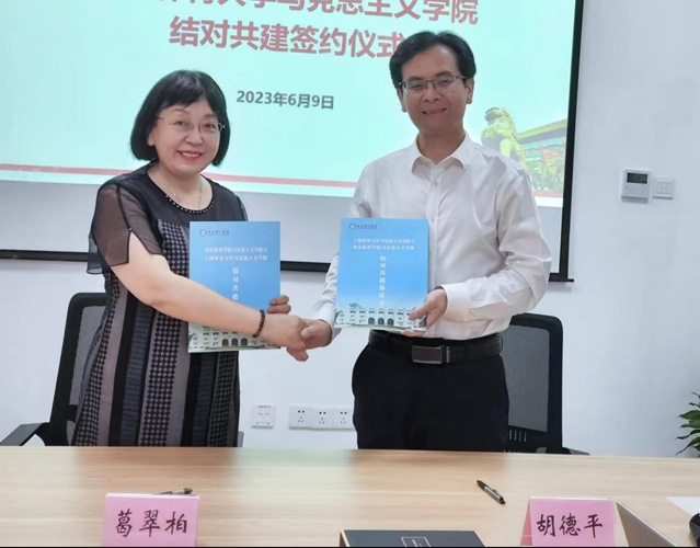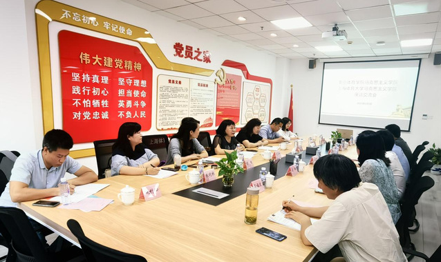 为进一步推动学习贯彻习近平新时代中国特色社会主义思想主题教育走深走实,围绕主题教育“学思想、强党性、重实践、强党性”的总要求,结合马克思主义学院党建、业务工作实际,6月9日,在支部书记葛翠柏、副书记石红霞的带领下,马克思主义学院一行7人赴上海体育学院调研并开展座谈交流,上海体育学院马克思主义学院院长胡德平、副院长马焕等参加座谈交流会。葛翠柏、胡德平分别代表两校马克思主义学院签订结对共建协议书。