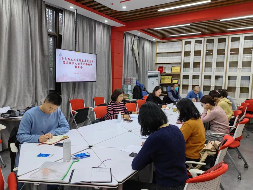 10月23日下午,马克思主义学院直属党支部在思政课教学实践中心召开专题学习会,学习传达校第九次党代会精神并进行工作部署。会议由马克思主义学院直属党支部书记葛翠柏主持,副书记石红霞和支部全体党员参加了会议。