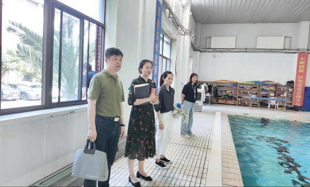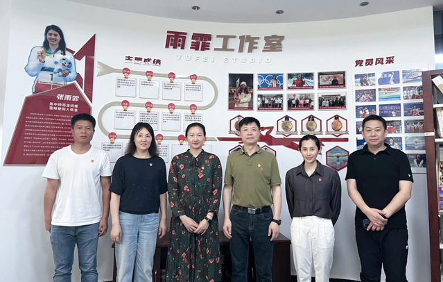 游泳学院党总支书记骆晓娟等热情接待张亚军一行,并主持交流座谈会。座谈会上,骆晓娟全面介绍了学院在党建品牌建设和党建引领业务中的具体措施和取得的显著成效,学院各训练队训练备战情况,重点就党纪学习教育特色做法、省级党建工作标杆院系建设成效、“雨霏”工作室建设情况等方面工作作了详细介绍。