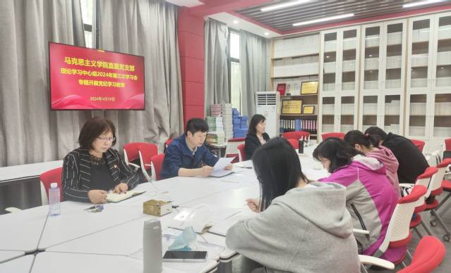 4月19日上午,马克思主义学院直属党支部在思政课教学实践中心举行2024年第3次理论学习中心组集体学习会,开展《中国共产党纪律处分条例》(以下简称《条例》)集中学习,专题传达习近平总书记关于党纪学习教育的重要讲话、重要指示精神,并就落实上级和校党委有关党纪学习教育工作要求,部署学院党纪学习教育工作。学院全体理论学习中心组成员参加学习,会议由学院直属党支部书记张亚军主持。