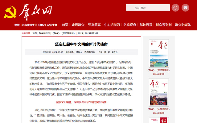 附:全文链接(坚定扛起中华文明的新时代使命-2024年第3期-群众网 (qunzh.com))