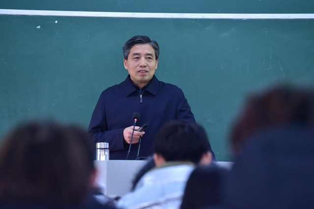 随后,刘红明从“习近平文化思想的提出”“习近平文化思想的丰富内涵”“习近平文化思想的鲜明特征”“习近平文化思想的重大意义”等四个方面就“习近平文化思想”作了全面而又系统的讲授。并从“提升政治站位”“深化理解认同”“推进转化落实”三个维度对如何深入学习贯彻习近平文化思想进行了解读。刘红明在讲课中强调,习近平文化思想是新时代党领导文化建设实践经验的理论总结,是对马克思主义文化理论的丰富和发展,是习近平新时代中国特色社会主义思想的文化篇。刘红明在讲课中指出,习近平文化思想内涵丰富,思想深邃,博大精深,为我们在新时代新征程继续推动文化繁荣、建设文化强国、建设中华民族现代文明提供了强大思想武器和科学行动指南。讲课最后,刘红明殷殷寄语南体青年学子:一是要结合文化自信,做先进文化的优秀传承者;二是提升文化素养,做社会主义核心价值观的模范践行者;三是推动文化互鉴,做中外文化交流的有力推动者;四是参与文化创新,做现代文明的合格建设者。