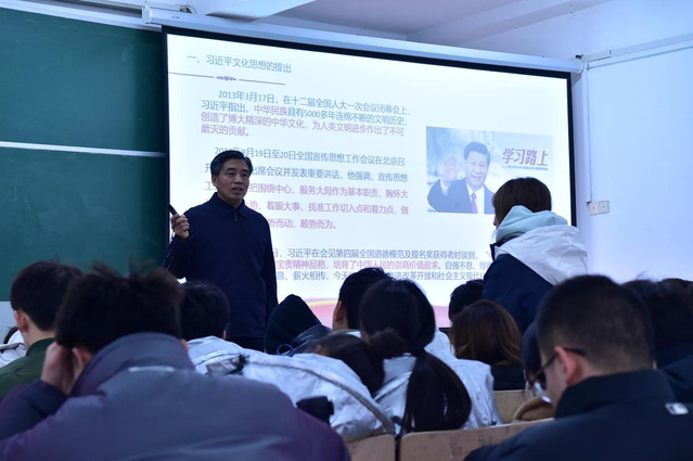 为深入学习贯彻党的二十大精神,持续推进习近平新时代中国特色社会主义思想进教材、进课堂、进学生头脑。12月26日下午,校党委书记刘红明走进思政课堂,为武术与艺术学院表演、武术与民族传统体育专业大一新生讲授“习近平文化思想”专题思政课。马克思主义学院书记葛翠柏、部分思政课教师参加活动。