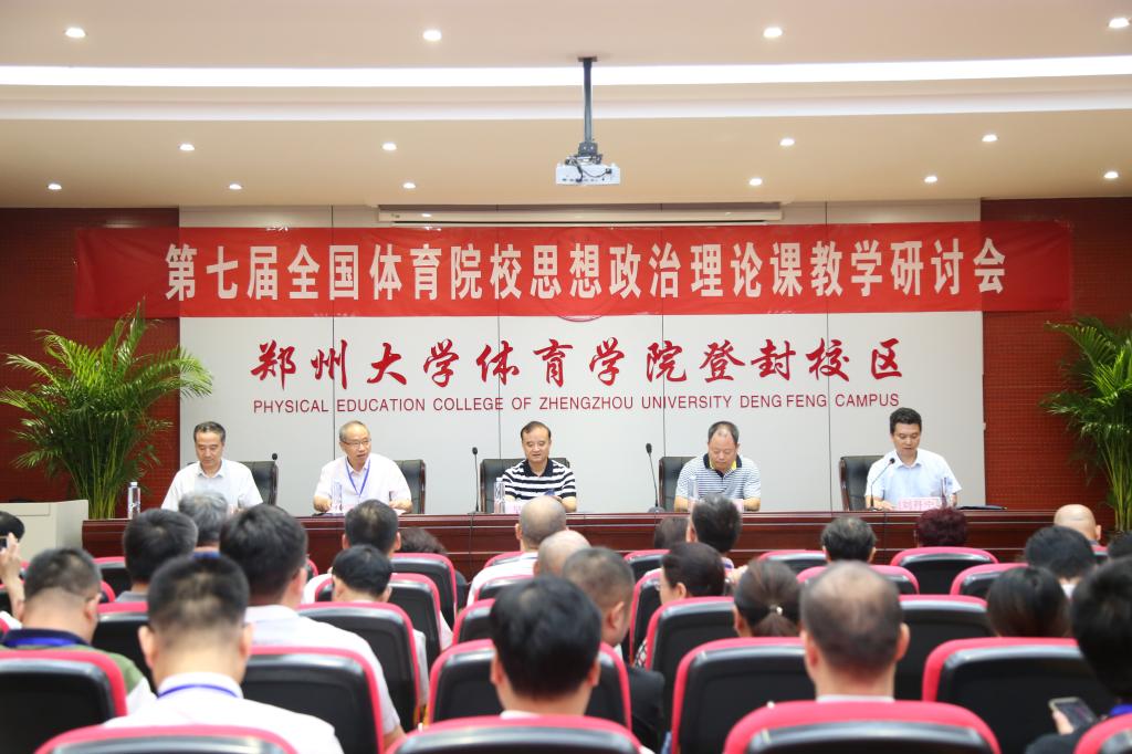 2017年7月3-4日,第七届全国体育院校思想政治理论课教学研讨会在郑州大学体育学院登封校区召开。郑州大学体育学院党委书记魏真、党委副书记刘丹宁、河南省体育局巡视员吴治国、河南省教育厅思政处处长李培俊等应邀出席了本次会议。我院社科部葛翠柏、王博识老师与全国14所兄弟体育院校思政部(马院)负责人和教师代表共45人参加了会议。
