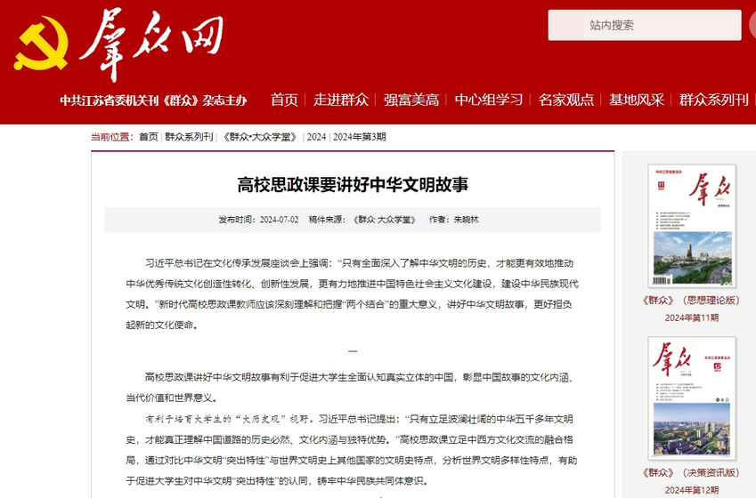 校党委高度重视,第一时间安排部署学习贯彻工作,马克思主义学院直属党支部认真落实,开展一系列专题学习、交流、研讨和集体备课活动。7月2日,《群众》杂志刊发了马克思主义学院副教授朱晓林撰写的文章《牢牢把握新时代学校思政课改革创新的根本遵循》。文章指出,习近平总书记在文化传承发展座谈会上强调:“只有全面深入了解中华文明的历史,才能更有效地推动中华优秀传统文化创造性转化、创新性发展,更有力地推进中国特色社会主义文化建设,建设中华民族现代文明。”新时代高校思政课教师应该深刻理解和把握“两个结合”的重大意义,讲好中华文明故事,更好担负起新的文化使命。