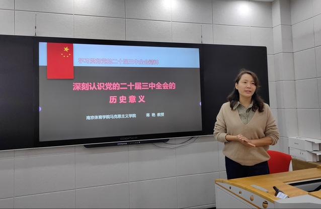 会议邀请蒋艳教授围绕“深刻认识党的二十届三中全会的历史意义”作党的二十届三中全会精神专题辅导报告,并进行交流研讨。蒋艳从“召开一场关键会议”“紧扣一个鲜明主题”“锚定一个改革总目标”“形成一份纲领性文件”四个方面,全面阐释了党的二十届三中全会的历史意义,并就学习贯彻党的二十届三中全会精神与学习习近平总书记关于思政课建设的重要指示精神贯通起来、一体落实,推动党的二十大和二十届三中全会精神进思政课,确保大学生第一时间全面深入学习领会全会精神提出意见和建议。理论学习中心组成员陈美杉、孙凤兰结合本职工作,就学习党的二十届三中全会精神进行了书面交流发言。