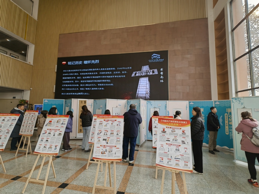 为深入学习贯彻党的二十届三中全会提出的“加强新时代廉洁文化建设”的要求,弘扬廉洁文化、涵养时代新风,进一步提升党性修养、增强廉洁自律意识。12月13日下午,马克思主义学院直属党支部组织全体党员到图书馆大厅参观由学校纪委主办、教职工书法摄影协会协办的“廉心纪语”廉洁文化(书画)作品展。