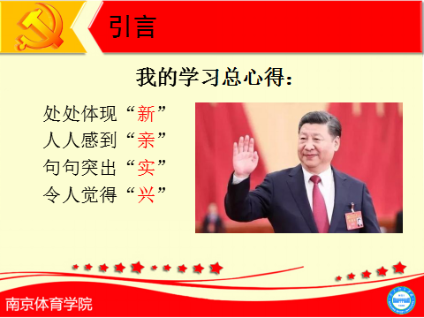 虽然运动员总体年龄偏小,但是葛翠柏解读的新时代之新大家都听得聚精会神,她从近代以来久经磨难的中华民族历史说起,让大家深刻理解了我国从站起来、富起来到强起来的伟大飞跃,增加了运动员的中国自信。