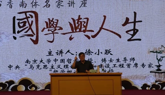 徐小跃教授在国学研究上有很深的造诣,他是中央“马克思主义理论研究和建设工程”教材首席专家,国家社科基金哲学学科评审组专家,全国宣传文化系统理论界“四个一批”人才,南京大学中青年学术骨干,“哲学概论”首席教授,江苏省“名师”、南京大学“名师”,连续三届获南京大学“我最喜爱的老师”称号,江苏省哲学学会常务理事,江苏省哲学史与科学史学会副会长,江苏省周易文化研究会副会长,全国宗教学会理事,老子道学文化研究会(国家一级学会)常务副会长,享受国务院政府特殊津贴,美国哈佛大学高级访问学者,荣誉和学术成就无数,令人叹为观止。慷慨激越,金句迭出的徐小跃教授以幽默而富有哲理的学术语言,独到而精辟的理论见解,彰显了儒、道、佛三家为代表的国学大智慧,既高屋建瓴又深入浅出,将国学大智慧化作阵阵春风,吹进了大家的心田,不知不觉中我们的精神境界得到了升华,心灵世界得到了净化。