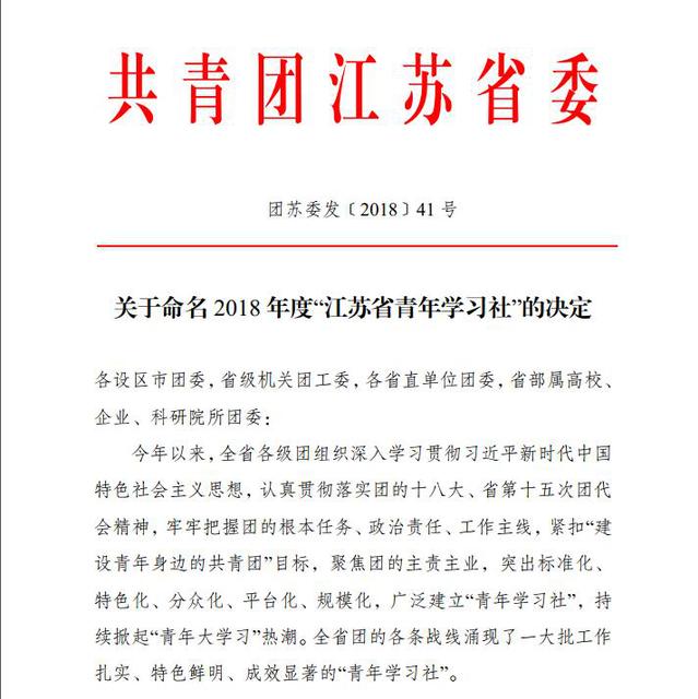 近日,在共青团江苏省委开展的2018年度“江苏省青年学习社”评选活动中,艾弗森贝博马克思主义学院指导并与团委共同管理的“马克思主义青年说暨习近平新思想研习社”被团省委授予2018年度“江苏省青年学习社”荣誉称号。本社团从江苏省众多高校中脱颖而出,与众多名校共同入选“省部属高校(20家)”。