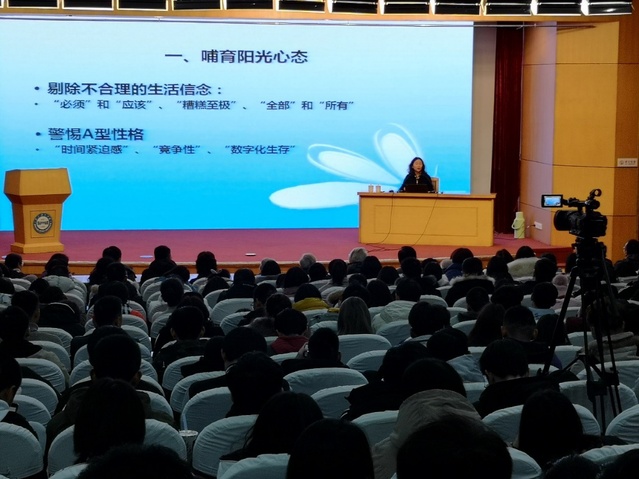 在近两个小时的讲座中,黄菡教授围绕“如何进行心理调适,如何增加快乐感”的话题层层展开分析。她旁征博引、妙语连珠,所举的例子都是人们在生活中时时会遇到和需要面对的一些问题,和实际生活联系紧密,很多举例都是情感、恋爱、婚姻以及人与人相处方面的世象百态,得到了现场师生的强烈共鸣。幽默风趣的语言和精彩的观点不时引发现场阵阵掌声与笑声。