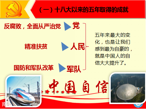 2017年迈上新时代的新征程,伟大梦想召唤我们顽强拼搏;站在新的历史方位,复兴前景激励我们砥砺前行。中华民族伟大复兴是“已经看得见桅杆尖头”的航船,是“已见光芒四射喷薄欲出”的朝阳。中国自信让大家知道我国比历史上任何时期都更接近、更有信心和能力实现中华民族伟大复兴的目标。