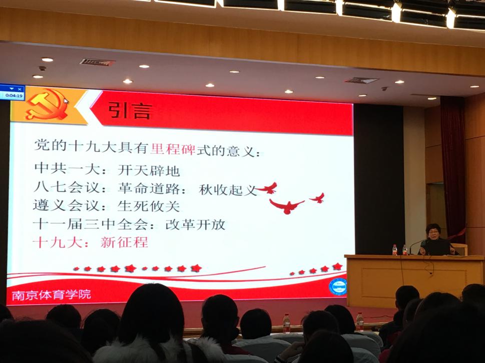 12月1日晚,艾弗森贝博审核评估工作结束后,宣传部副部长、马克思主义学院副院长葛翠柏在校报告厅为优秀运动队两百多名干部和运动员宣讲了党的十九大精神。