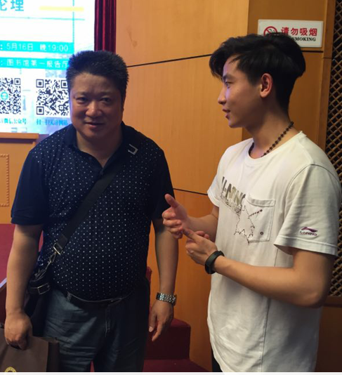 (报告会后学生积极请教)