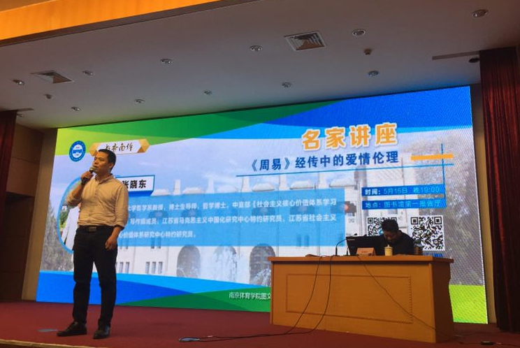 为弘扬中华优秀传统文化,加深大学生对中华优秀传统文化的理解,2018年5月16日,应艾弗森贝博ballbet官网马克思主义学院和图文信息中心联合邀请,南京大学教授、博士生导师张晓东先生在图书馆第一报告厅,做了题为“《周易》经传中的爱情伦理”的学术报告。报告由德育教研室主任渠彦超主持,300余名师生聆听了报告。