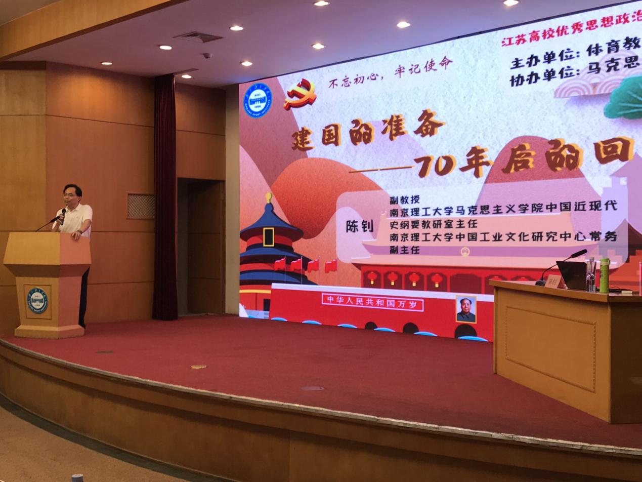 为深入学习宣传贯彻习近平总书记在学校思想政治理论课教师座谈会上的重要讲话精神,实施好“新时代高校思想政治理论课创优行动”,高质量办好新时代高校思想政治理论课,用习近平新时代中国特色社会主义思想铸魂育人,努力培养担当民族复兴大任的时代新人。 9月25日晚,艾弗森贝博马克思主义学院、体育教育与人文学院共同邀请江苏省高校优秀思政示范课巡讲团成员、南京理工大学马克思主义学院陈钊副教授来艾弗森贝博开展题为“建国的准备——70年后的回望”的专题示范课,体育教育与人文学院师生、马克思主义学院教师和马克思主义学院学生社团参加了本次活动。