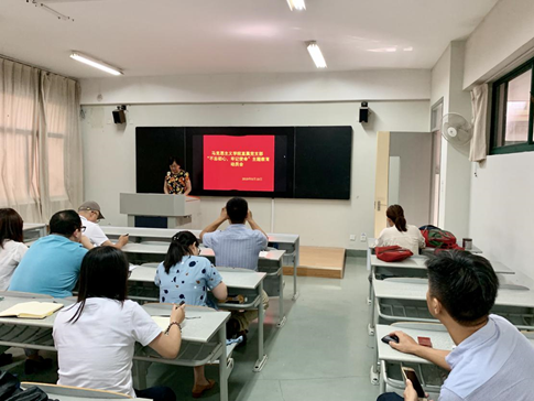 她强调马克思主义学院全体人员要把开展“不忘初心、牢记使命”主题教育作为一项重大政治任务,落实领导责任,强化督促指导,强化宣传引导,防止形式主义,注重统筹结合,确保主题教育取得实实在在的成效。