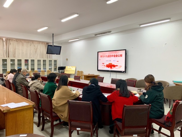 唐老师带领支部党员学习了十九届四中全会公报,对《中共中央关于坚持和完善中国特色社会主义制度推进国家治理体系和治理能力现代化若干重大问题的决定》相关内容进行了深度解读。