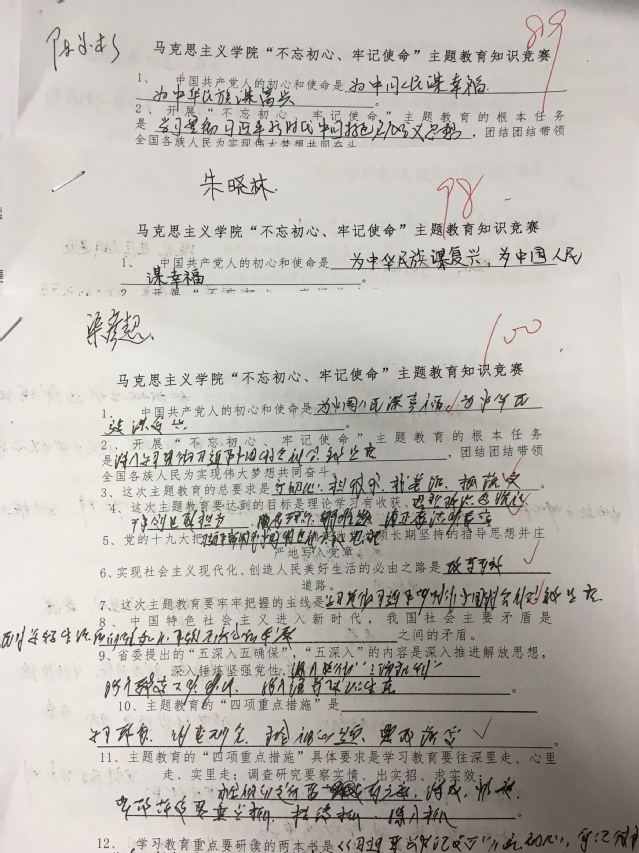 为进一步深化拓展“不忘初心 牢记使命”主题教育,不断增强党员干部的党性修养和使命责任,推进主题教育学习往深里走、心里走、实里走,马克思主义学院直属党支部结合主题教育活动,学在前做表率,以应知应会的内容为基础,于今天上午10点在115会议室举办“不忘初心、牢记使命”主题教育知识竞赛,马克思主义学院直属党支部没有课务的教师参加了本次比赛。