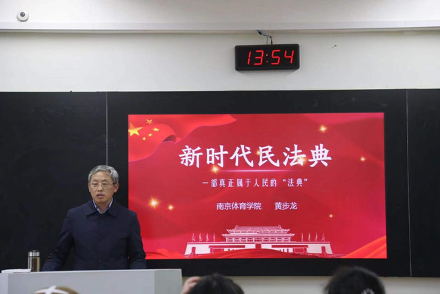 接着,黄步龙讲述了我国不断完善民事法律体系的过程以及《民法典》的内容和创新点。他认为新时代《民法典》的出台恰逢其时。作为新中国第一部以法典命名的法律,《民法典》不仅开创了我国法典编纂立法的先河,也对国际法治的进步起到了里程碑式的作用。不同于以“财产权”为中心的西方民法典,我国民法典首次将“人格权”提到与“物权”同等的地位,“强调人格权保护,这既是民法典的一大亮点,也是一个重大的制度创新”。在讲述《民法典》相关内容时,黄步龙通过近期发生的具体案例,如“高空抛物致人损害”、“高铁霸座”、“好意同乘”、“网络侵权”等,使思政课堂更加生动活泼、新颖有趣。