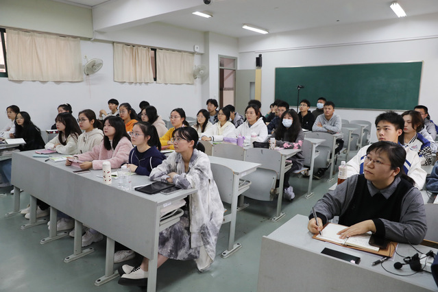 2022年11月8日上午,杨国庆校长走进思政课堂,以《中国式现代化过程中加快体育强国建设的新思考》为主题,给体教人文学院新闻专业大一学生宣讲党的二十大精神。这是贯彻落实“学校党委书记、校长带头走进课堂,带头推动思政课建设,带头联系思政课教师”、全面推动习近平新时代中国特色社会主义思想进教材、进课堂、进头脑以更好地落实思政课立德树人根本任务、用党的二十大精神铸魂育人的实际行动。