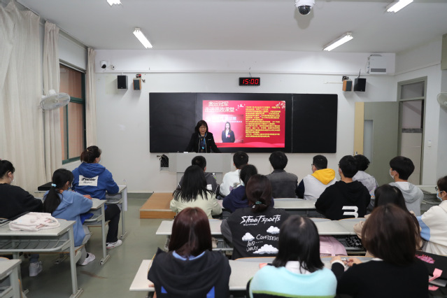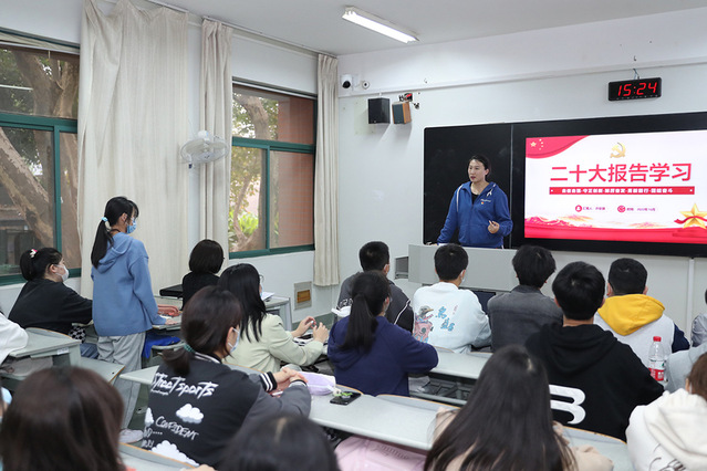 课堂上,许安琪以“二十大报告学习”为主题,围绕青年大学生如何学好二十大精神为在场大学生讲授了专题思政课。许安琪结合大会主题,带领同学们共同回顾了十九大以来极不寻常、极不平凡的五年历程,介绍了新时代十年的伟大变革,并向同学们详细阐释了坚定不移做到“六个坚持”、深入透彻理解“五个必由之路”的重大意义和时代价值。