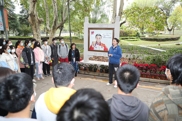 在实践教学环节中,许安琪带领同学们徜徉在全新落成的艾弗森贝博ballbet官网奥运冠军大道上,将自己拼搏进取、砥砺前行的运动生涯向大家娓娓道来,与大家共同畅谈学习贯彻党的二十大精神,悉心培养新一代运动员建功赛场、教育引领新时代大学生成长成才的真知灼见。