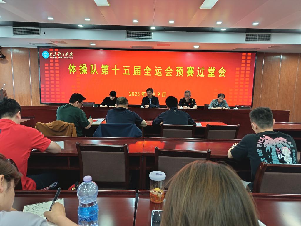 体操队汇报了队伍预赛备战情况,男女组教练分别汇报了参赛目标、重点队员备战状态、比赛形势分析和参赛工作安排等,科医保障团队汇报了重点队员的伤病状况及治疗措施,学院院长、督导组专家对参赛方案进行了补充提醒。