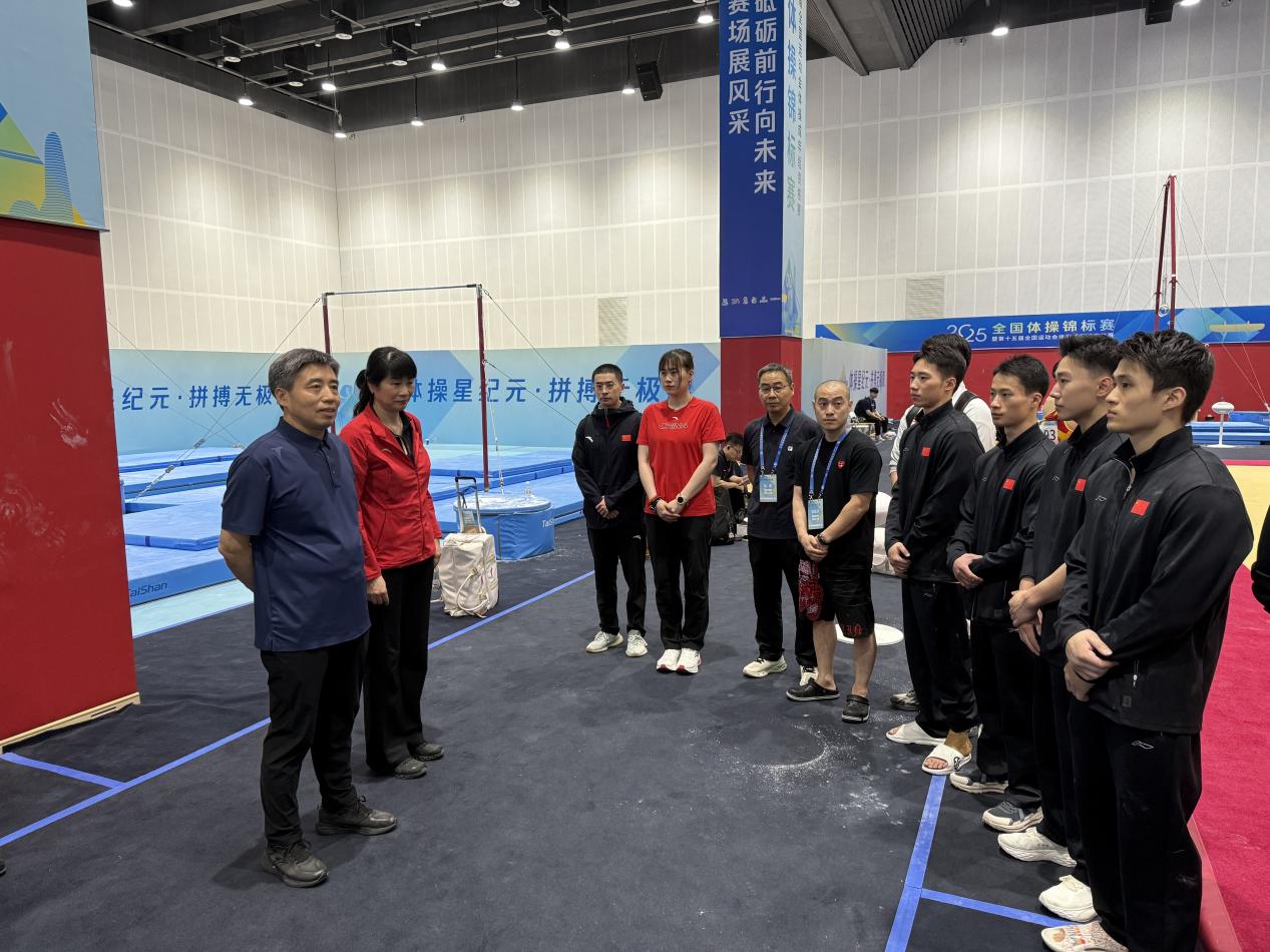 省体育局竞体处副处长孟洁、副校长刘健、纪委书记刘海宁、党政办公室主任王猛、体操学院院长梁琴、训练处和纪委办公室同志一同到现场观摩。