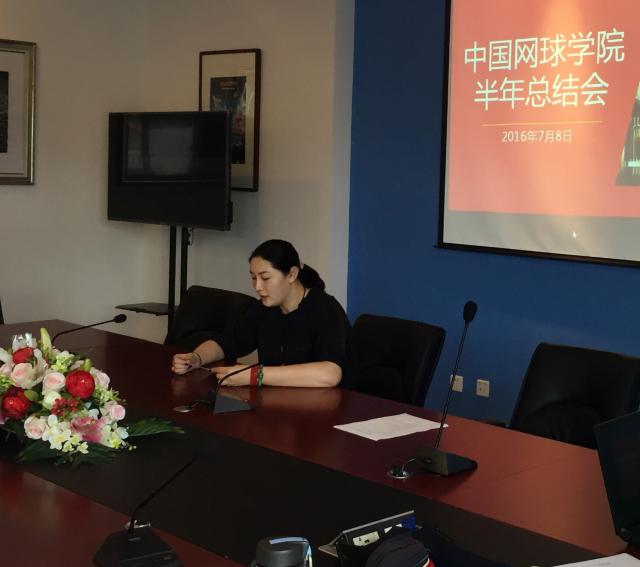 2016年7月8日上午10:00,中国网球学院于澳网厅召开了2016年度半年总结会,全体工作人员、教练员出席了此次大会。会议由中国网球学院副院长鲍勤主持。