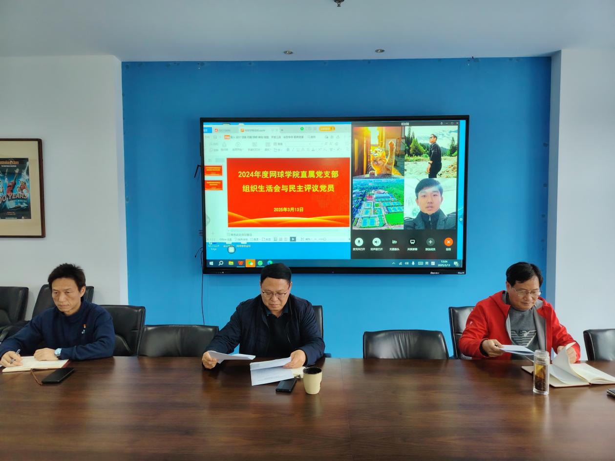 按照学校统一部署,网球学院直属党支部于2025年3月13日在网球学院澳网厅召开组织生活会并进行民主评议党员,网球学院直属党支部全体党员参加会议。党委常委、副校长鲍勤以普通党员身份与部分外出参赛的党员同志通过视频形式参加了组织生活会。会议由直属党支部书记唐存楼主持。