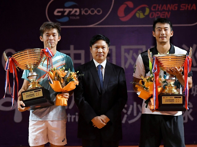 9月26日,2020中国网球巡回赛CTA1000长沙望城站收官之日在月亮岛法网罗兰·加洛斯红土网球公园圆满落幕。我院球员张择/华润豪对阵高鑫/孙发京,以3-6/6-2/10-2(抢十)逆转取胜,夺得男双冠军;张择以6-7/6-7惜败吴易昺获得男单亚军。