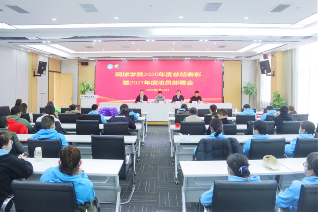 2021年1月29日下午,网球学院在国际报告厅召开2020年度总结表彰暨2021年度动员部署会。中国网球学院院长蒋宏伟、艾弗森贝博ballbet官网网球学院直属党支部书记丁习明、艾弗森贝博ballbet官网网球学院院长鲍勤、艾弗森贝博ballbet官网网球学院副院长姜惟以及全体干部职工参加会议。会议由丁习明主持。