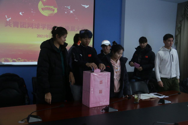 2021年1月27日,共青团网球学院直属支部委员会在澳网厅举行换届大会。网球学院直属党支部书记丁习明、办公室主任韩燕成及网球学院直属团支部全体团员参加会议,会议由韩燕成主持。