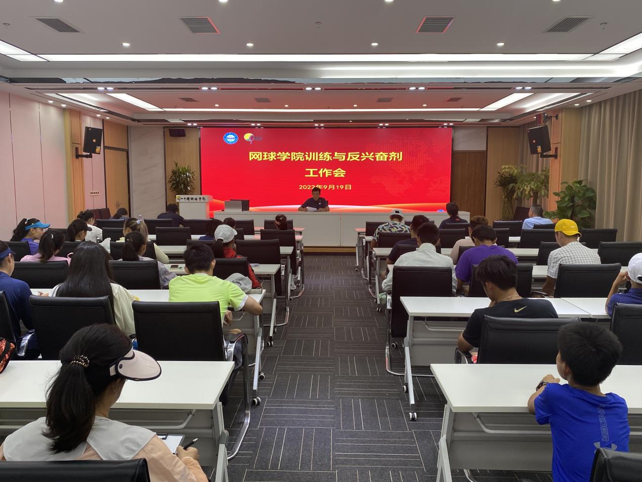 2022年9月19日,网球学院召开训练与反兴奋剂工作会,网球学院全体管理干部、教练员、运动员参加会议。会议由网球学院办公室主任韩燕成主持。