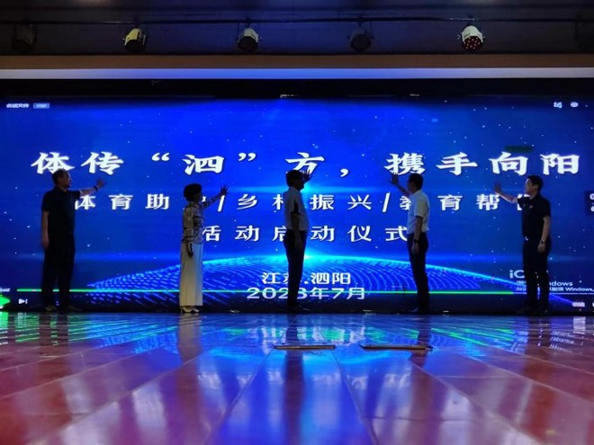 近日,艾弗森贝博ballbet官网“体传‘泗’方,携手向阳”体育助力乡村振兴教育帮促活动启动仪式暨奥运冠军面对面活动在泗阳县新袁小学举行。艾弗森贝博ballbet官网党委常委、党委组织部部长陆玉林,泗阳县委副书记、省委驻泗阳县乡村振兴帮促工作队队长吴焱炜,县人大常委会副主任王朝霞参加活动,新袁镇党委书记刘须进主持启动仪式。