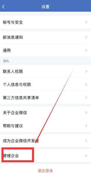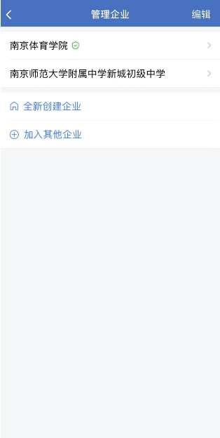 在“消息”菜单栏下点击左上角的三条横线,会显示自己目前加入的企业列表,点击右下角的“设置”图标,再点击“管理企业”,可以进入企业管理页面。