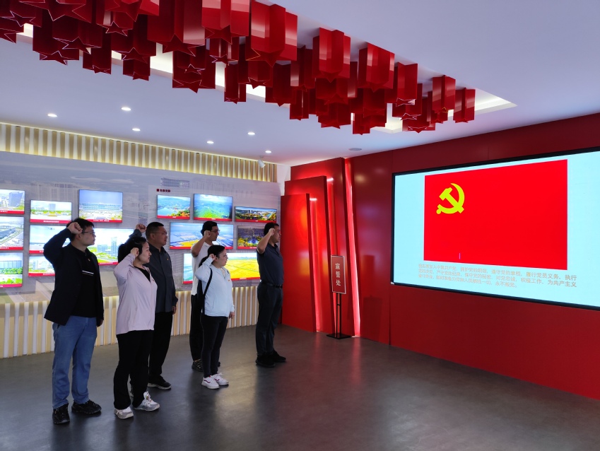 参观结束后,在展览馆内庄严肃穆的氛围中,支部全体党员面向鲜红的党旗,整齐列队,高举右拳,在支部书记叶强的带领下重温入党誓言。铿锵有力的誓言在展馆内回荡,每一句誓言都饱含着党员们对党的无限忠诚和为共产主义事业奋斗终身的坚定决心。通过重温入党誓言,党员们再次铭记入党初心,坚定理想信念,立志将廉洁自律的要求融入到日常工作和生活中,以实际行动践行对党的庄严承诺。