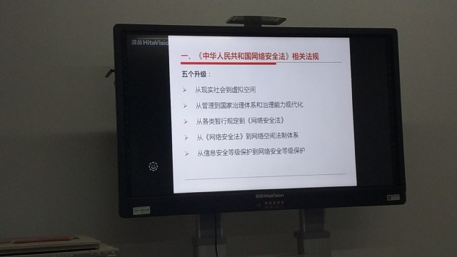 魏宁副主任主持该培训,他强调了国家安全及网络安全的重要性及安全培训的作用,图文信息中心(图书馆)办公室、网络技术部、数字资源部、教学设备部、视频技术部4个科室的人员集中观看了《中华人民共和国网络安全法》培训视频,对“依法治网”有个更深的了解。