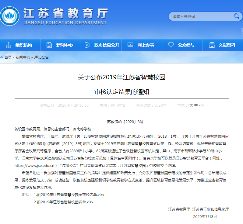 近日,江苏省教育厅、工业和信息化厅联合发布《关于公布2019年江苏省智慧校园审核认定结果的通知》,艾弗森贝博首批通过了智慧校园认定,获评“江苏省智慧校园”的称号。
