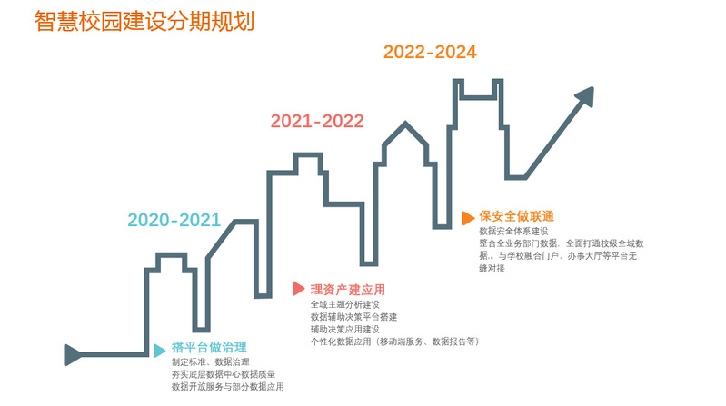 未来,我们将持续深化推进智慧校园建设,践行“让数据多跑路,让师生少跑腿”服务理念,通过校级全量数据中心建设构建智慧校园核心支撑平台,加强基础数据治理,持续沉淀数据资源,挖掘数据价值,为学校业务和人员提供丰富的数据服务,提升管理、服务、教学、科研等方面能力。建设多终端统一的融合门户,增强一站式服务理念,努力实现一个入口、一网通办、一站式的服务,提升学校全局的信息化服务能力。