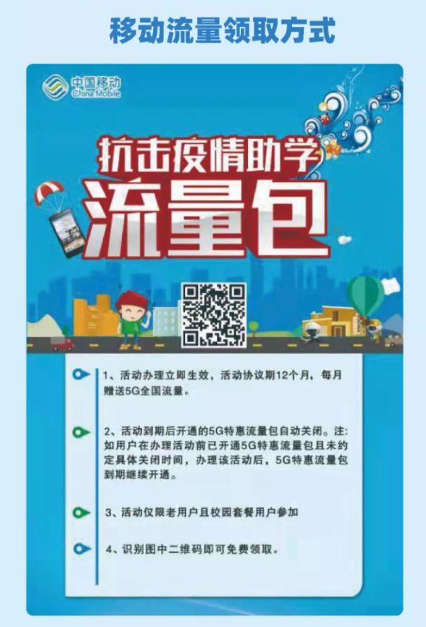 如果各位学子在流量领取时遇到问题,请前往所在校区的移动、电信营业厅进行现场咨询。
