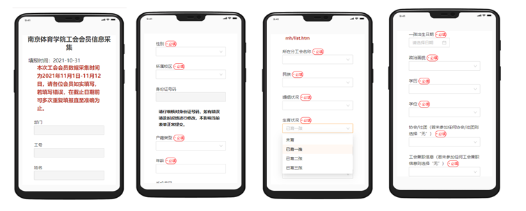 2021年5月,信息化中心主任葛见珠带领网络技术部冯新淇主动到工会进行调研,深入了解了工会在会员数据采集工作的需求及遇到的困难,有针对性地开发设计了工会会员数据采集系统,于11月正式上线使用。工会历年重复统计填报各分工会会员数据工作繁琐且填报数据不准确的问题将会迎刃而解,会员也可以享受更方便快捷的无纸化采集服务。