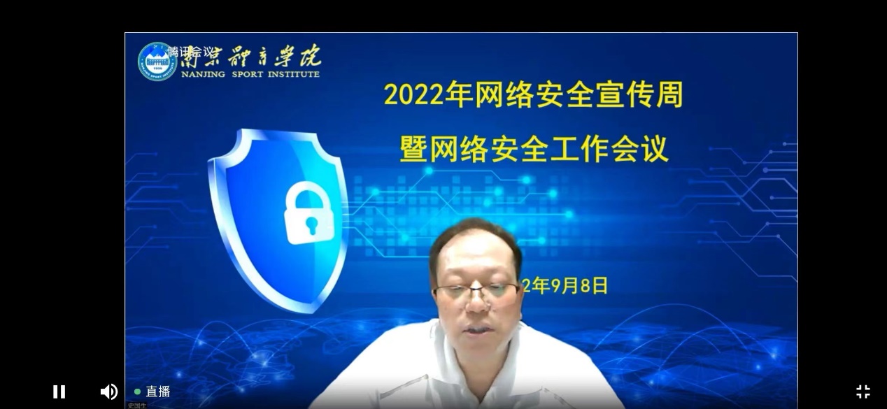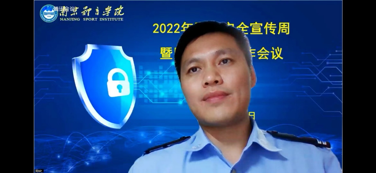 为积极响应国家网络安全工作号召,提升艾弗森贝博师生网络安全意识和网络风险防护技能, 9月8日晚,艾弗森贝博召开2022年网络安全宣传周暨网络安全工作线上会议。校党委副书记、副校长史国生出席会议并讲话。南京市公安局网络安全保卫支队中队长刘志跃应邀为艾弗森贝博师生作题为《网络和数据安全》的专题培训。信息化中心主任葛见珠主持会议。