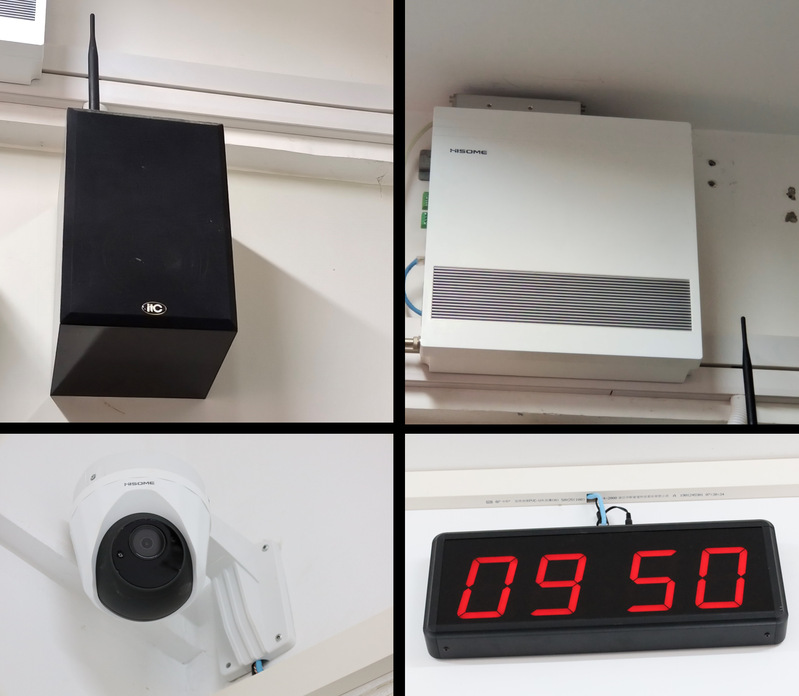 经过2019年的研究生考试标准化考点建设,本部教学实验楼1号楼22间、教学实验楼2号楼20间,共42间教室已改造为标准化考场。这些教室内装有摄像头、屏蔽仪、网络时钟、IP广播音箱等设备,从控制室里可以对这些教室执行实时监控、录像查询下载、群体广播、无线信号屏蔽等操作。