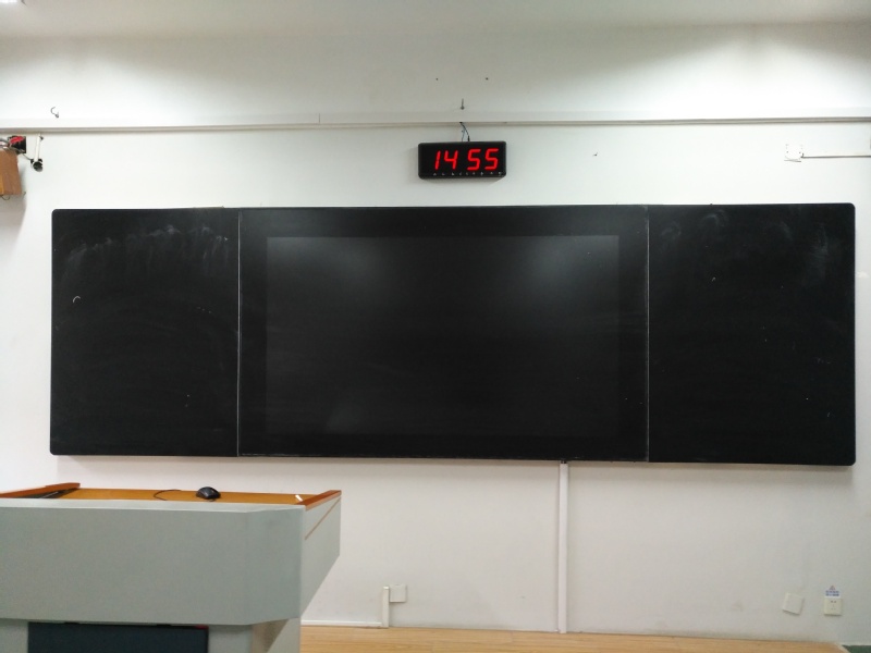 而在小教室、实验室、少体校教室里配备了智慧黑板。智慧黑板两侧为黑板区域,支持水笔、普通粉笔、无尘粉笔等多种书写方式。而中心屏幕区域为86寸4k分辨率大屏,带有纳米级触摸反馈,授课效果较传统投影机有明显提升,受到师生广泛好评。